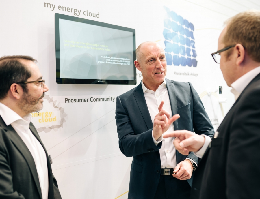 Oldenburg/Essen, 6. Februar 2018. Das Energieunternehmen EWE bietet ein neues Produkt an, mit dem sich Menschen nahezu komplett mit ihrem selbst erzeugten Solarstrom versorgen können. Auf der diesjährigen Energieleitmesse E-world in Essen gab EWE-Marktvorstand Michael Heidkamp zusammen mit Frédéric Gastaldo, CEO des Kooperationspartners Swisscom Energy Solutions, den Vertriebsstart der EWE myEnergyCloud bekannt.